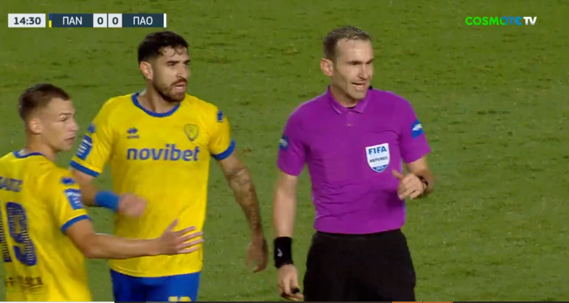Ο υπεύθυνος του var βγάζει στη... σέντρα τον var Ζαμπάλα για το πέναλτι υπέρ του Παναιτωλικού με το οποίο η ομάδα του Αγρινίου προηγήθηκε 1-0, τονίζοντας ότι έπρεπε να δείξει καλύτερες λήψεις στον διαιτητή και συγκεκριμένα αυτήν της επαφής του Τσέριν με το κεφάλι με τη μπάλα που προηγήθηκε της επαφής του χεριού με τη μπάλα.